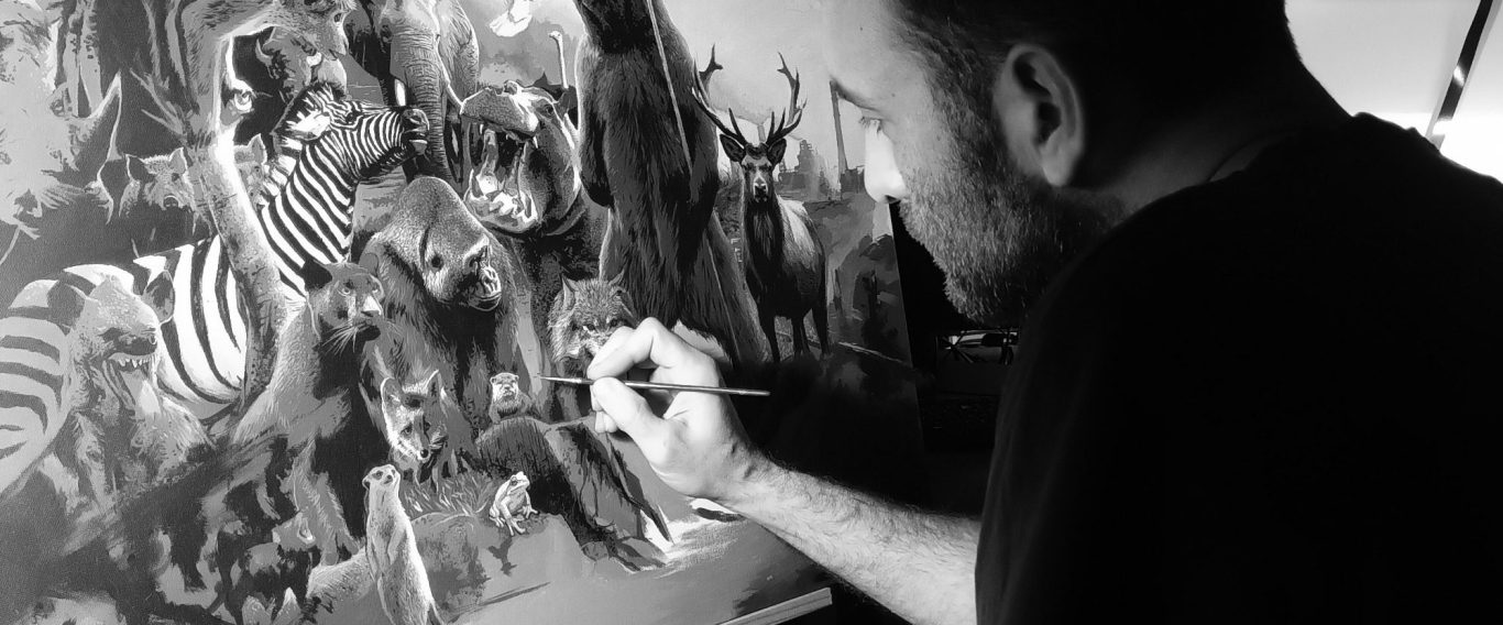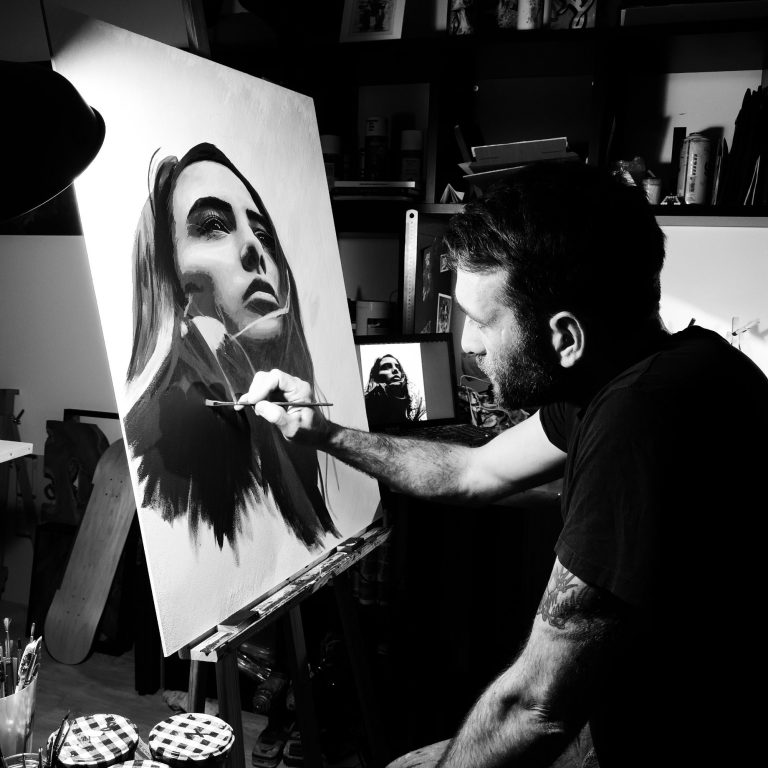 Issu du monde du graphisme et des enseignes, c’est en 2019 qu’il développe son art et sa technique aux pinceaux : onirisme et réalisme se côtoient avec force et délicatesse dans ses œuvres, qu’il veut engagées : celles-ci sont régulièrement cédées dans le cadre de ventes aux enchères et festivals consacrés à des causes qui lui tiennent à cœur.