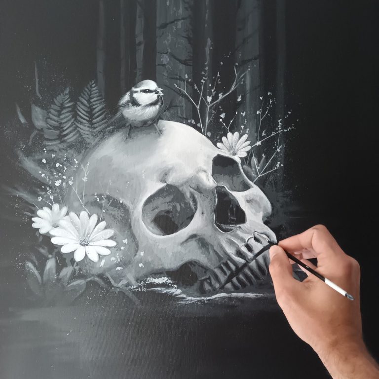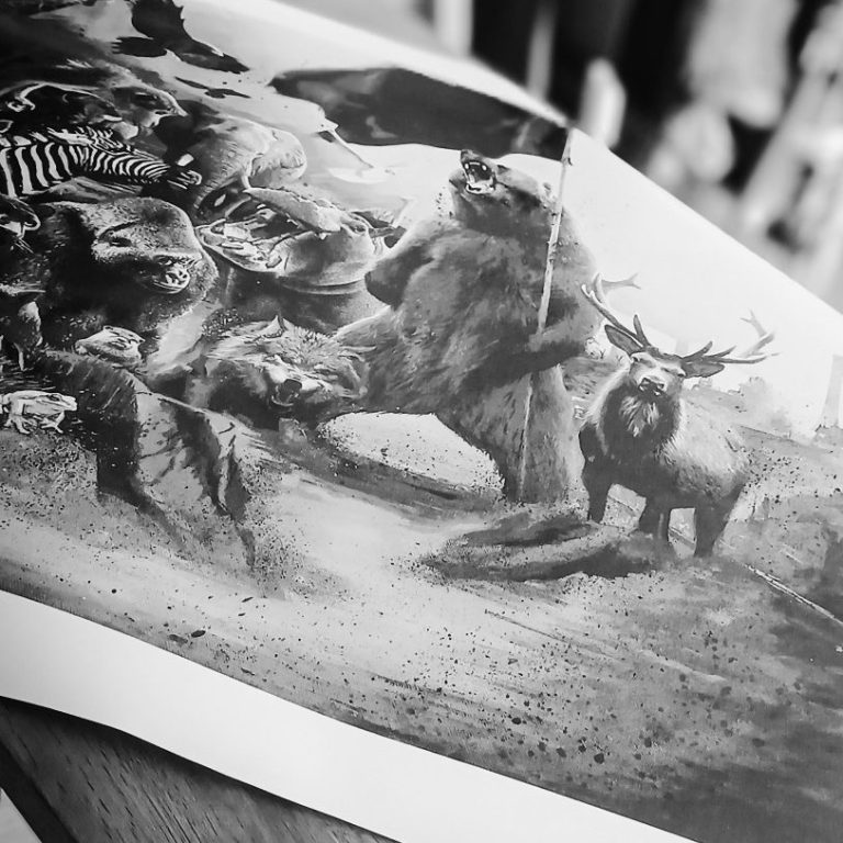 Passionné de dessin depuis l’enfance,  Horss, nous embarque dans son univers en noir et blanc sur les traces du vivant et du divin : humains et non humains prennent vie