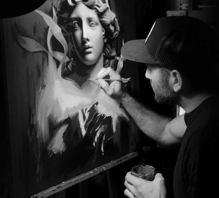Issu du monde du graphisme et des enseignes, c’est en 2019 qu’il développe son art et sa technique aux pinceaux : onirisme et réalisme se côtoient avec force et délicatesse dans ses œuvres, qu’il veut engagées : celles-ci sont régulièrement cédées dans le cadre de ventes aux enchères et festivals consacrés à des causes qui lui tiennent à cœur.