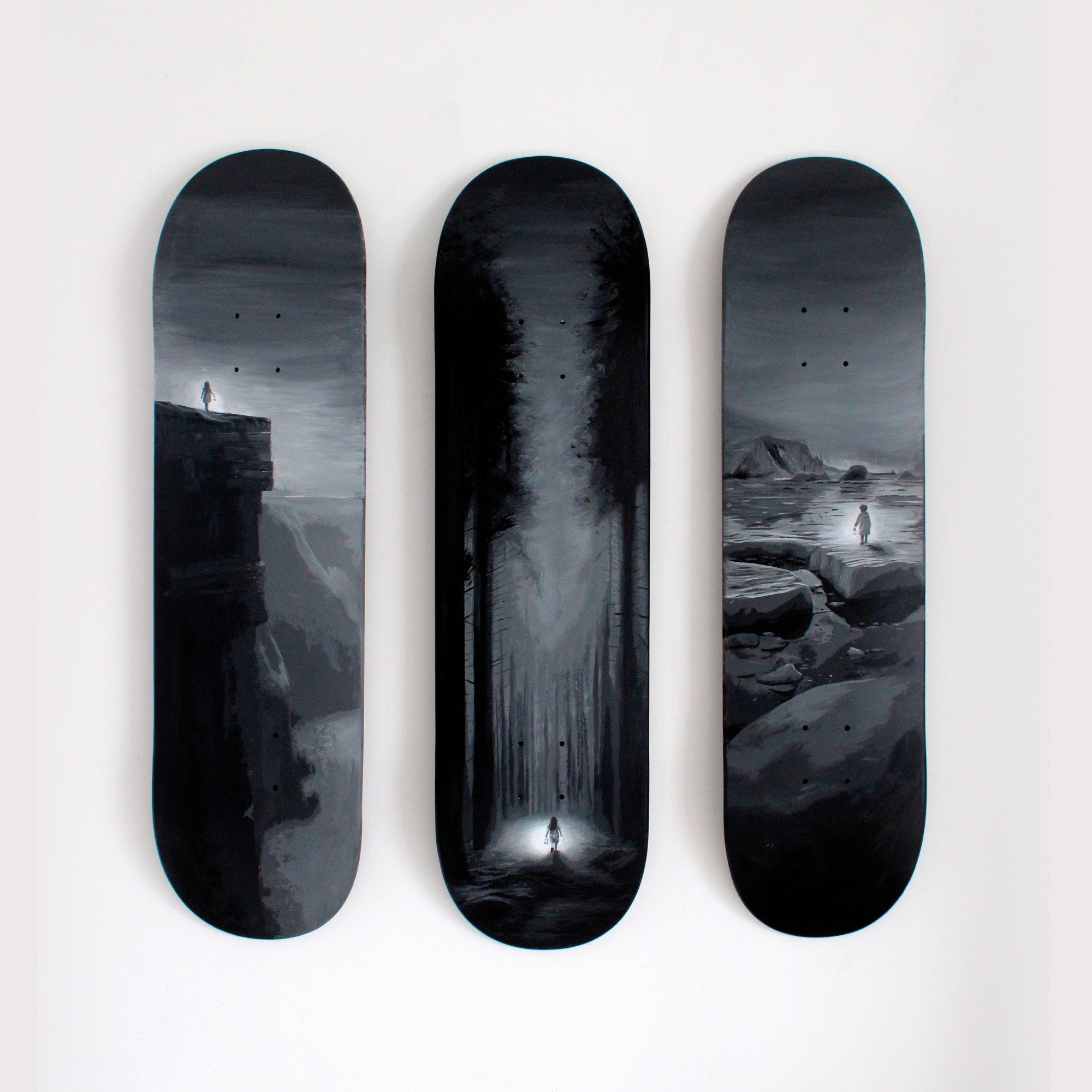 Trois planches de skate créées pour la nouvelle série "Balade"